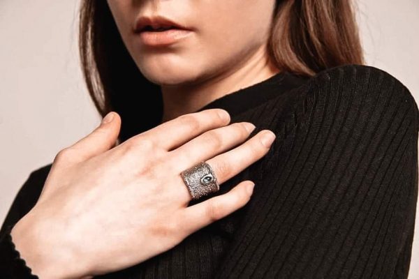 Ez a különleges gyűrű 925 %° finomságú ezüstből készült antikolt felülettel. Egyedi csiszolatú London blue topázzal készült. Teljesen egyedi darab!