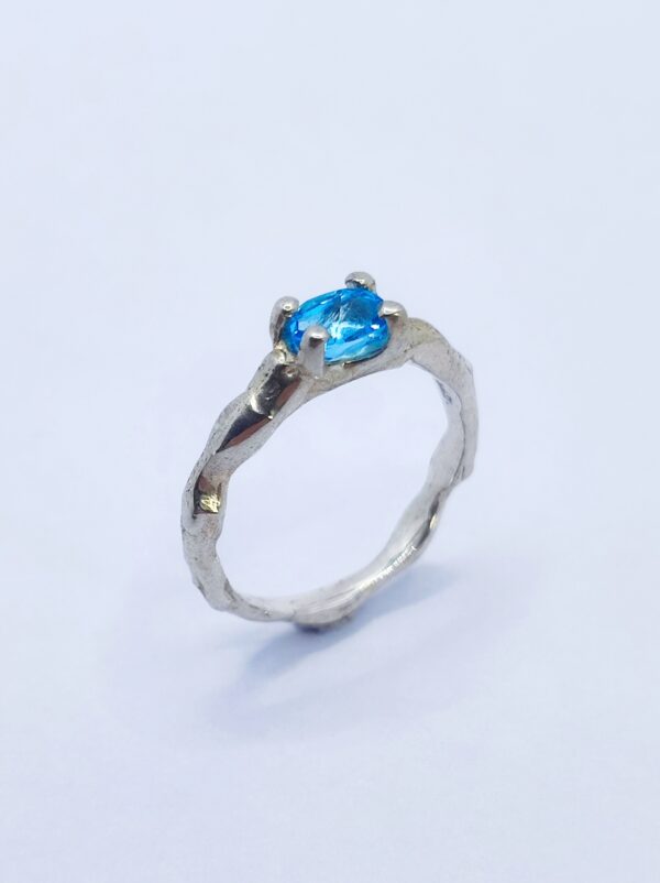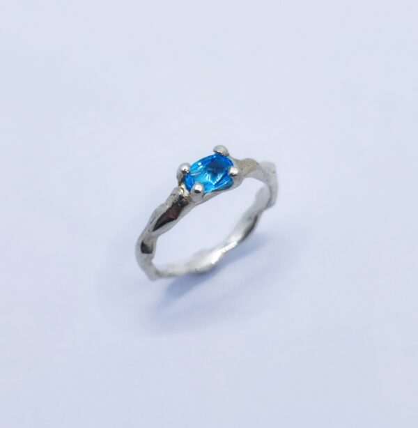 Különleges topáz kő díszíti (6×4 mm). A gyűrű átmérője 17 mm. Egyedi méretre készítésre is van lehetőség, ennek az átfutási ideje min. 2 hét. Ezt kérem jelezzék a megjegyzésben megrendeléskor.