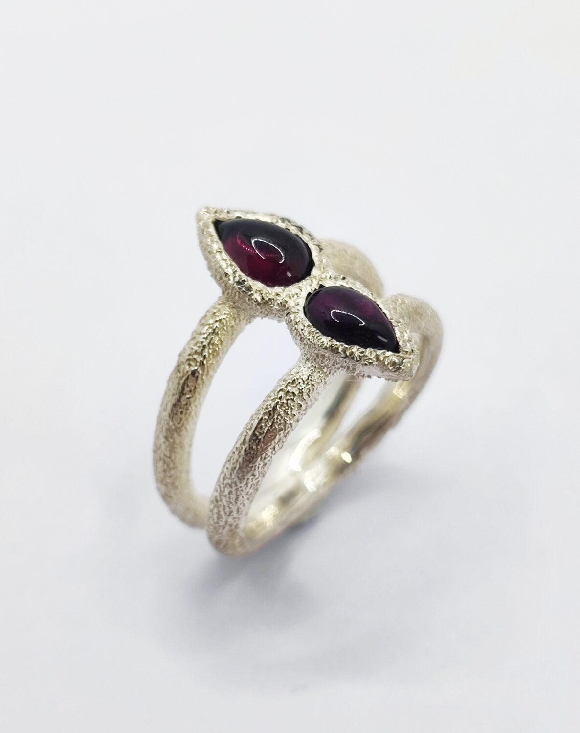 A Twins ezüst gyűrű különleges galván technológiával készült gyűrű ami a természet törvényeit követi és a különleges gránát kövek díszítik. A gyűrű átmérője 16 mm. Egyedi méretre készítésre is van lehetőség, ennek az átfutási ideje min. 2 hét. Ezt kérem jelezzék a megjegyzésben megrendeléskor.